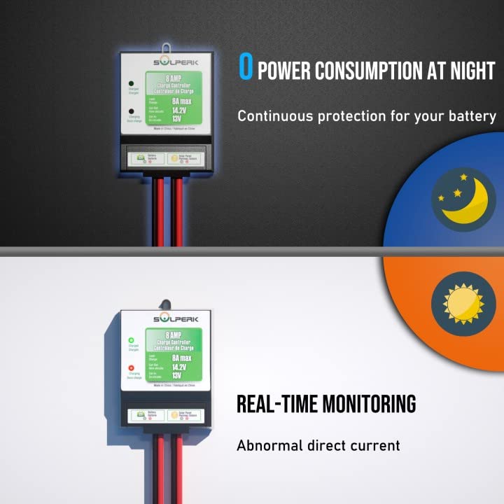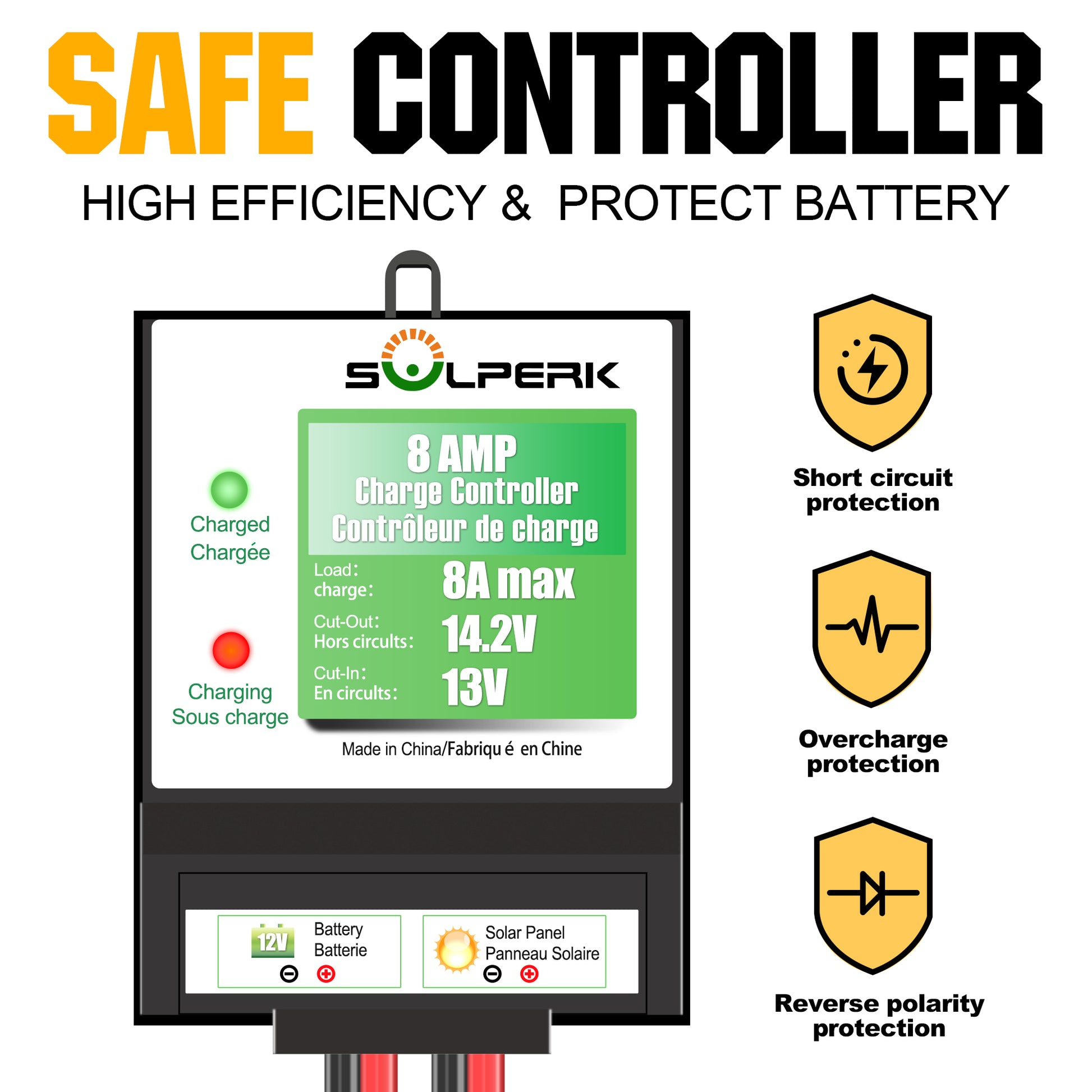 SOLPERK Solar Charger Controller, 8A Solar Panel Battery Smart Regulator for 12v Solar Battery Charger, Solar Battery Maintainer, 12v Battery Power Kit for RV, Boat, Car, Shed