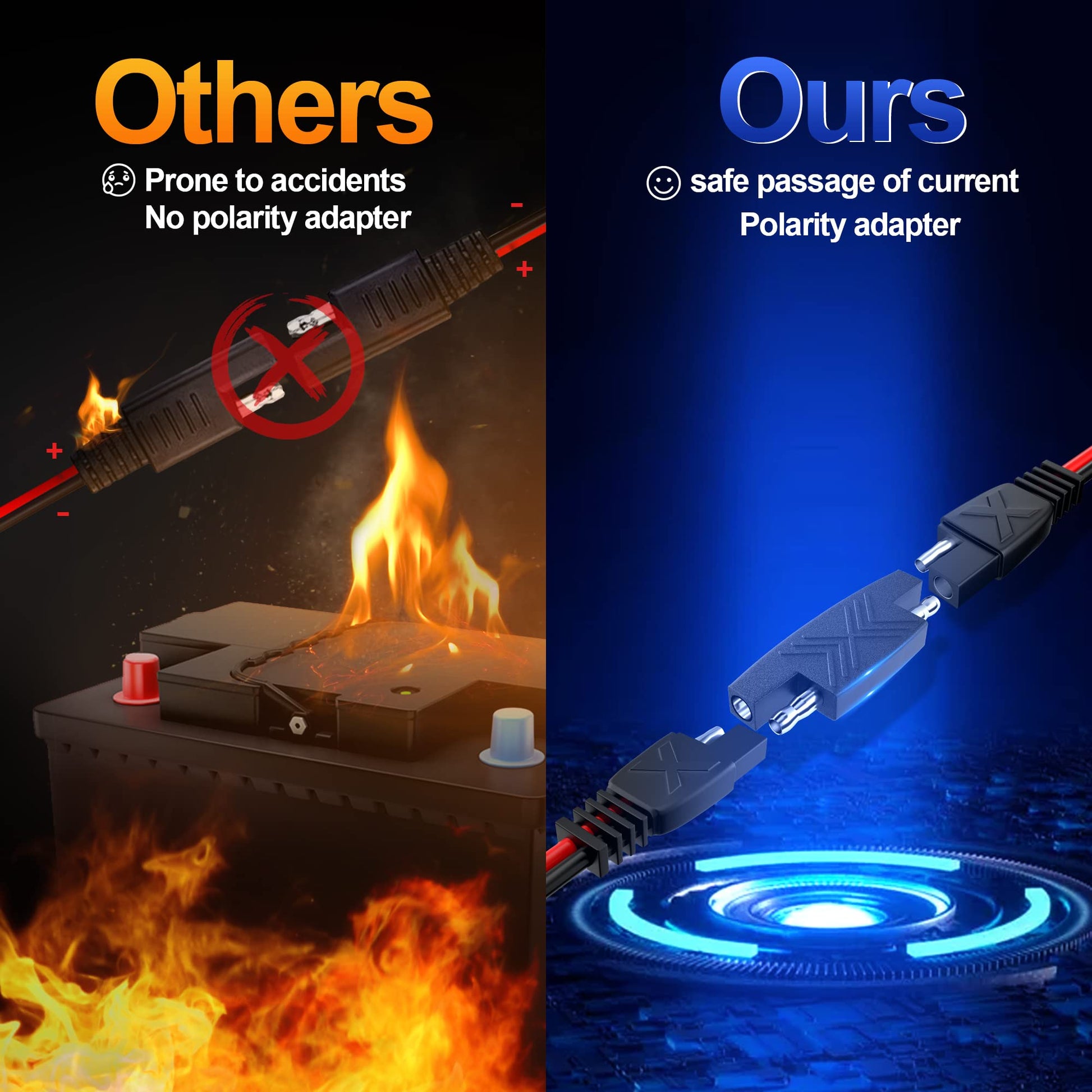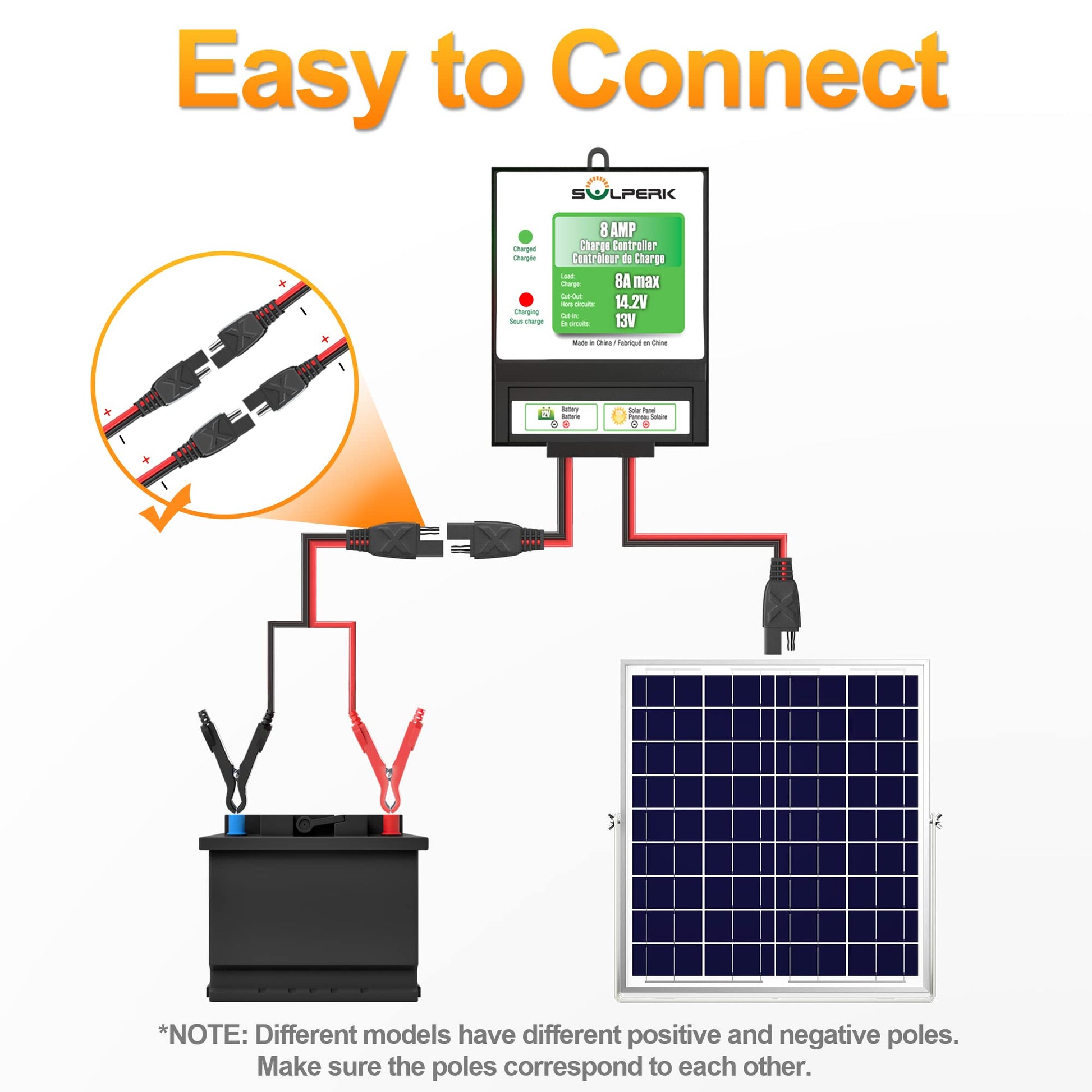 - 【EASY and QUICK to CONNECT 】Charge maintainer uses SAE plugs, positive to positive, negative to negative. Also, it comes with a polarity switch, which helps you properly connect the solar panel and solar charger.
